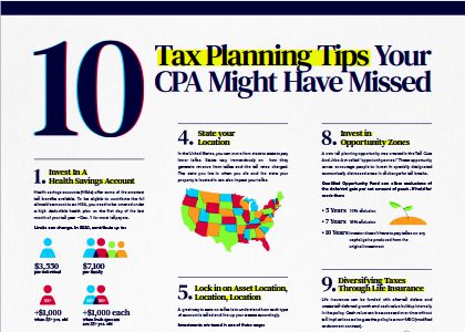 Take control of your taxes and how they fit into the big picture. Check out 10 planning tips your CPA might have missed.